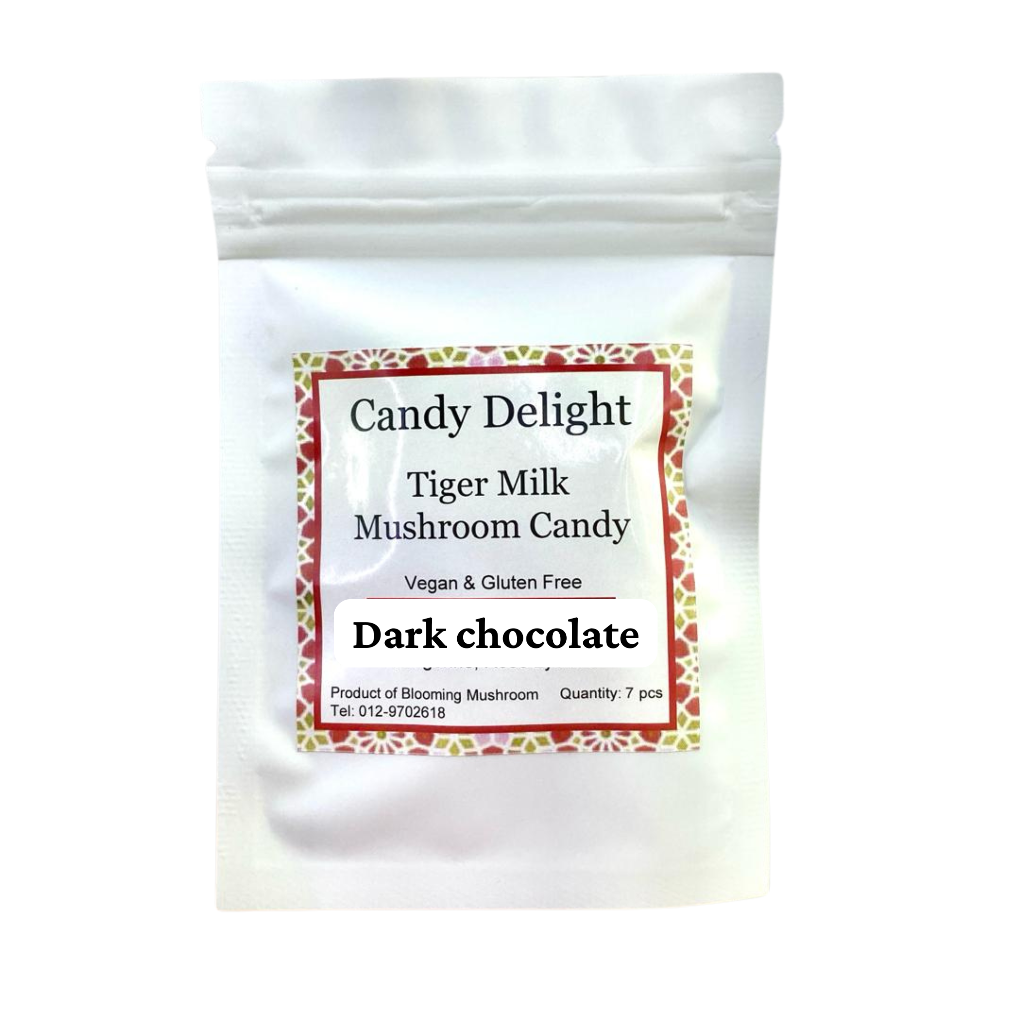 Ingredients: Sugar, Tapioca Flour, Cocoa Powder, Coconut Milk, Tiger Milk Mushroom.